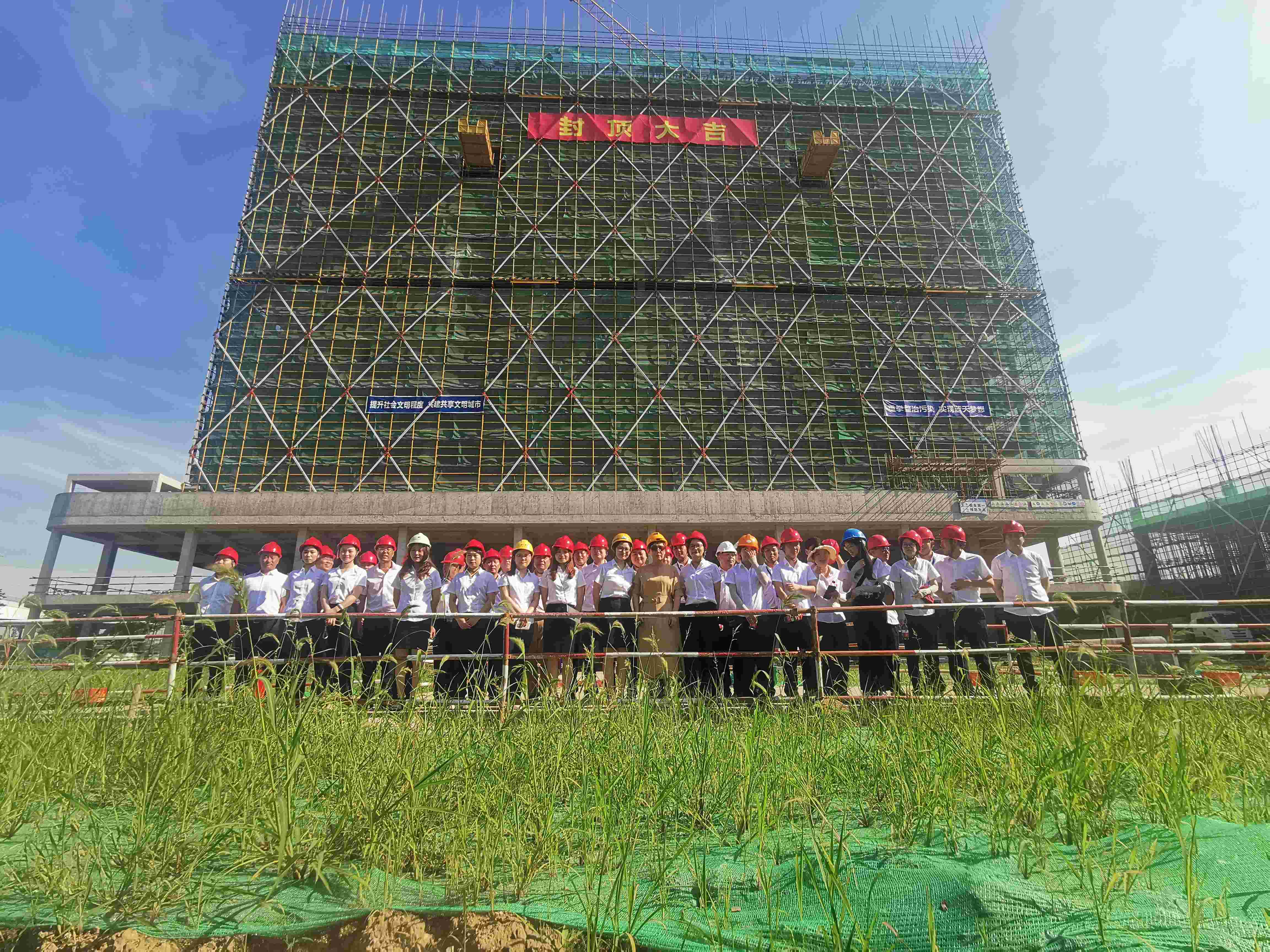 2022年6月27日,77779193永利官网科技仁和总部办公楼顺利封顶,公司领导一行现场参加了封顶仪式。